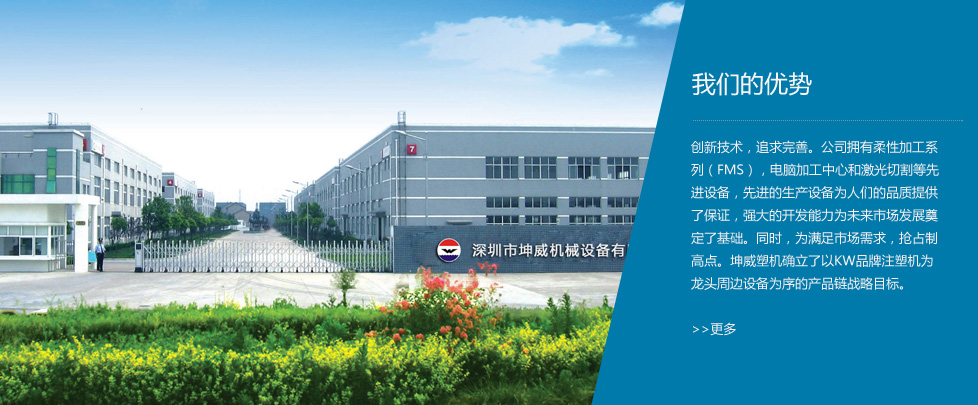 坤威公司是一家專業開發、設計、制造塑膠成型機的企業。一九九二年十月,在中國大陸成立坤威塑機械廠,公司十余年的穩定發展,坤威KINWEI品牌知名度不斷提升,得到了很多企業集團公司的認可和贊譽。二零一二年,為了滿足不斷拓展的市場需要,公司引進德國先進的技術設備在東莞成立分公司并擴大了工廠規模,位于東莞大嶺山鎮107國道邊,交通十分便利,我們誠邀廣大新老客戶蒞臨商洽! 技術創新,追求完善。我們公司生產的注塑機等設備廣泛用于:汽車作業、醫療器具業、刀具、潔具、玩具、日用品、嬰兒用品、電子接插件、光學鏡片、眼鏡架、背光板、手機機芯、齒輪、鞋底、色板、軟管、硬管等行業。經過十幾年的發展,坤威系列注塑機以”安全、快速、穩定、耐用”而著稱于業界。 公司堅持“以人為本,以質取勝”的經營方針,我們擁有一支具有現代化企業理念的高素質團隊,凝聚了一批富有理想充滿活力的戰略伙伴,匯集了眾多技術精英。以“團結、奮進、求實、創新”的精神,秉承“品質是公司現在和未來的決戰場”,我們愿意繼續竭誠為各新老合作客商提供先進質優的產品和滿意完善的售后服務! |